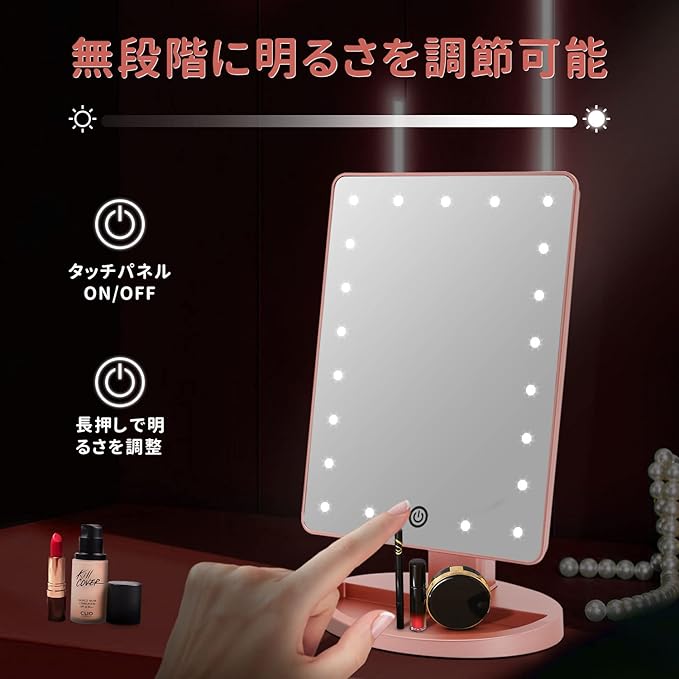 タッチセンサーを長押しするだけで、明るさを細かく調整可能。目に優しい明るさを選べるので、肌の色味や部屋の照明に合わせて最適なメイク環境を整えられます。小型ながら高機能、コストパフォーマンスも抜群です。